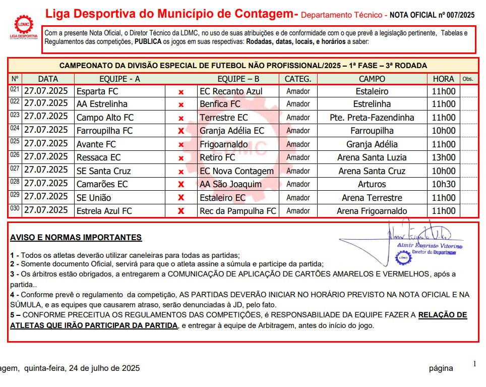 LDMC publica Nota Oficial da 3ª rodada da Divisão Especial