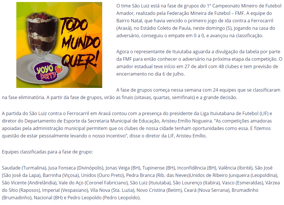 São Luiz, do bairro Natal em Ituiutaba empata e vai a fase de grupo do Campeonato Mineiro Amador